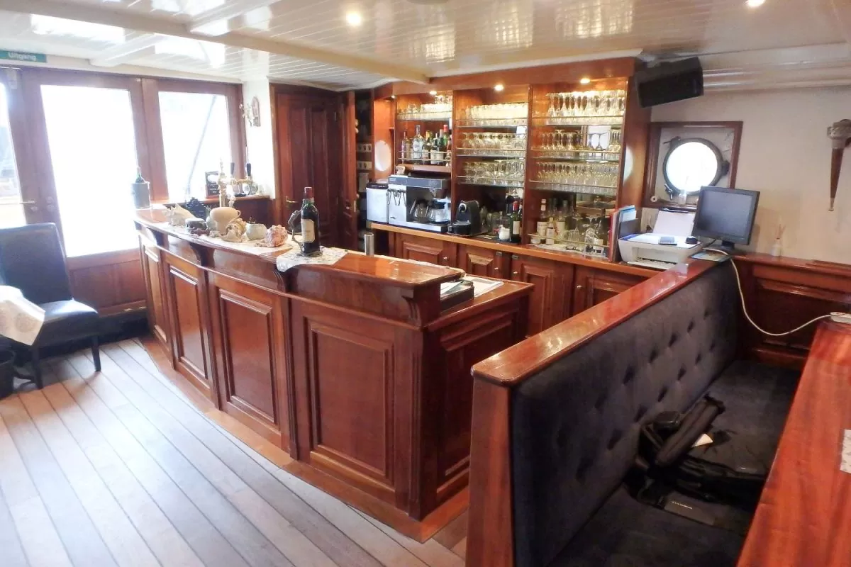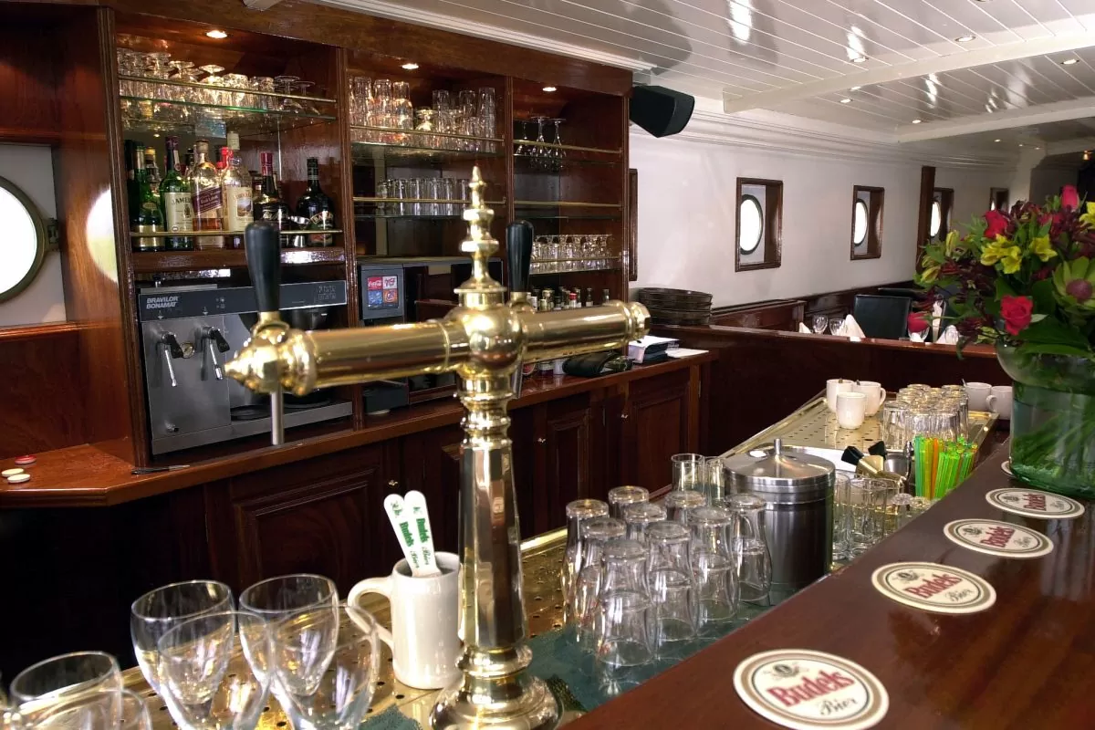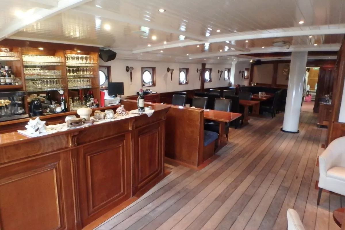 An Bord finden Sie ein stimmungsvoll eingerichtetes Restaurant im maritimen Stil mit einer gut ausgestatteten Bar. Hier werden täglich mit Sorgfalt zubereitete Mahlzeiten serviert. Die warme Holzausstattung und die stilvolle Einrichtung sorgen für eine angenehme und heimelige Atmosphäre.