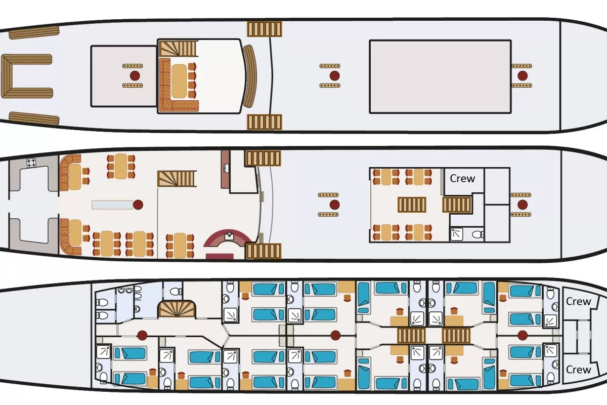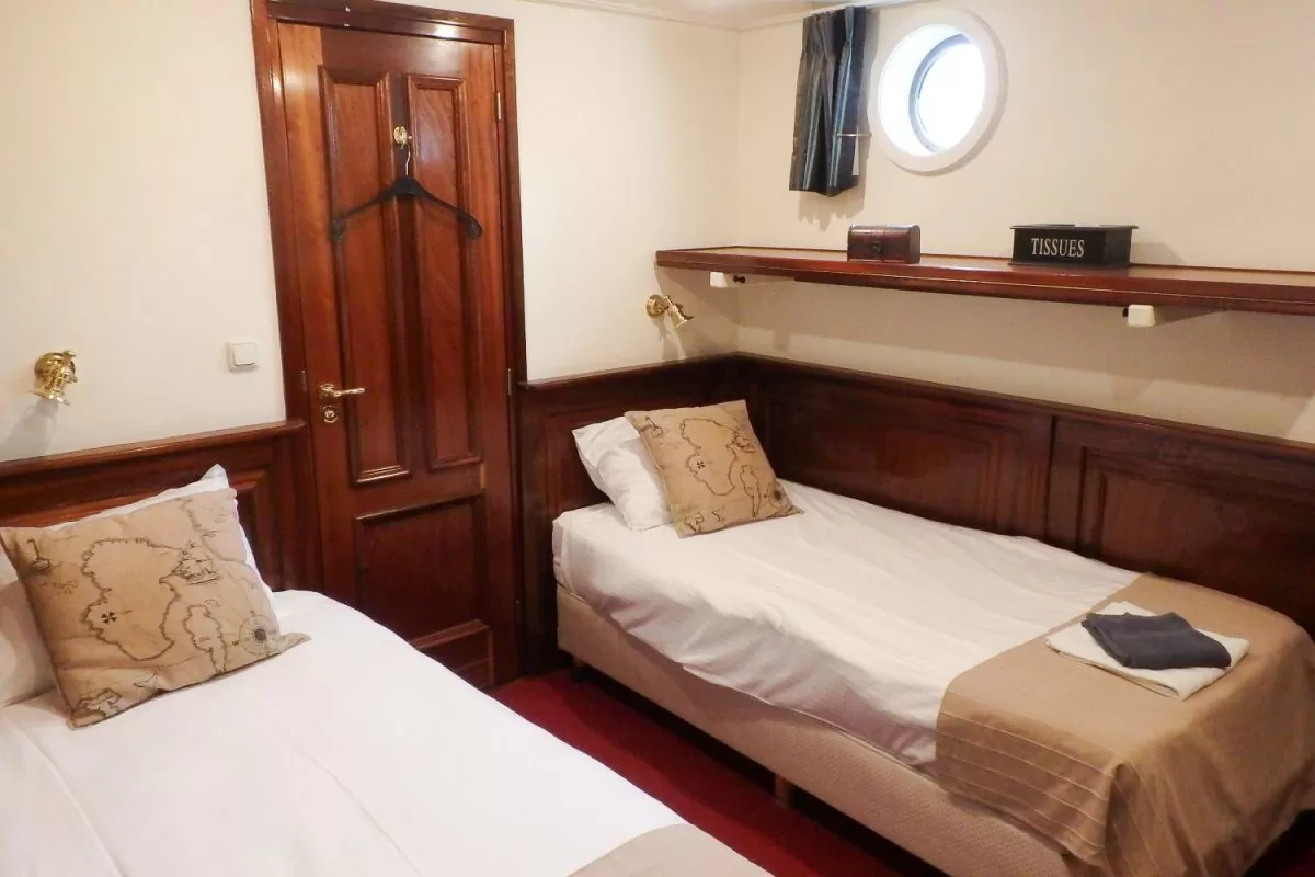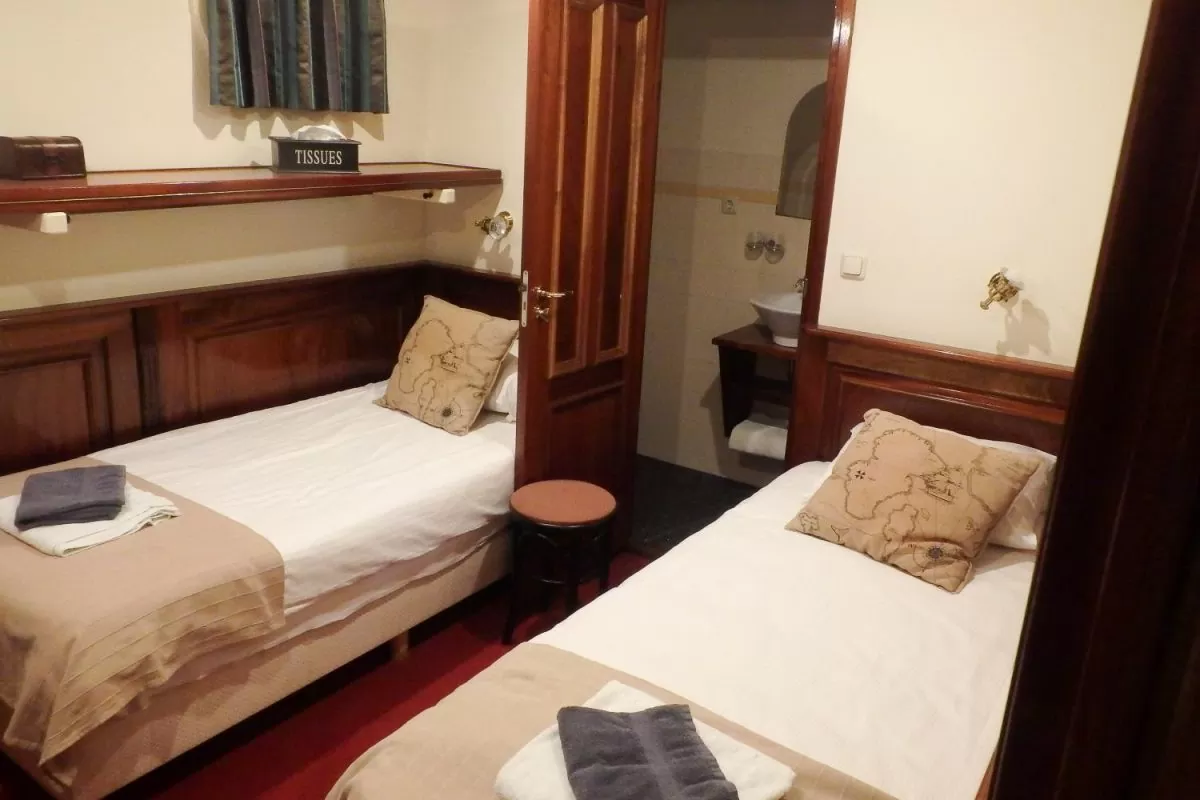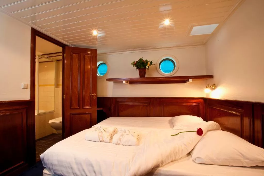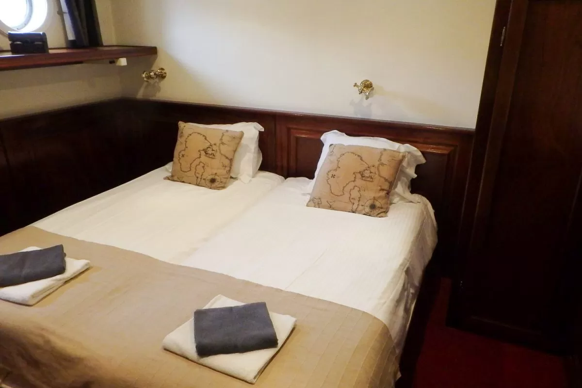 Sie wohnen auf dem Unterdeck, wo sich zwölf geräumige und komfortable Doppelkabinen befinden (ca. 11–13 m²).