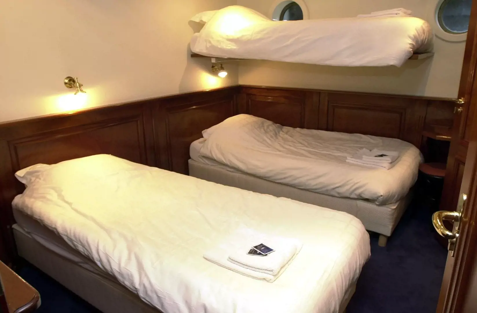 Vier Kabinen verfügen über ein zusätzliches Klappbett und sind für drei Personen geeignet.