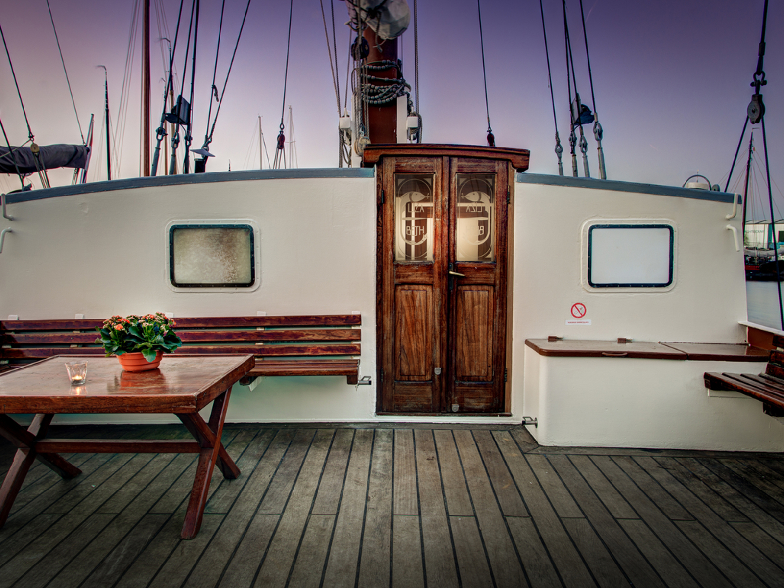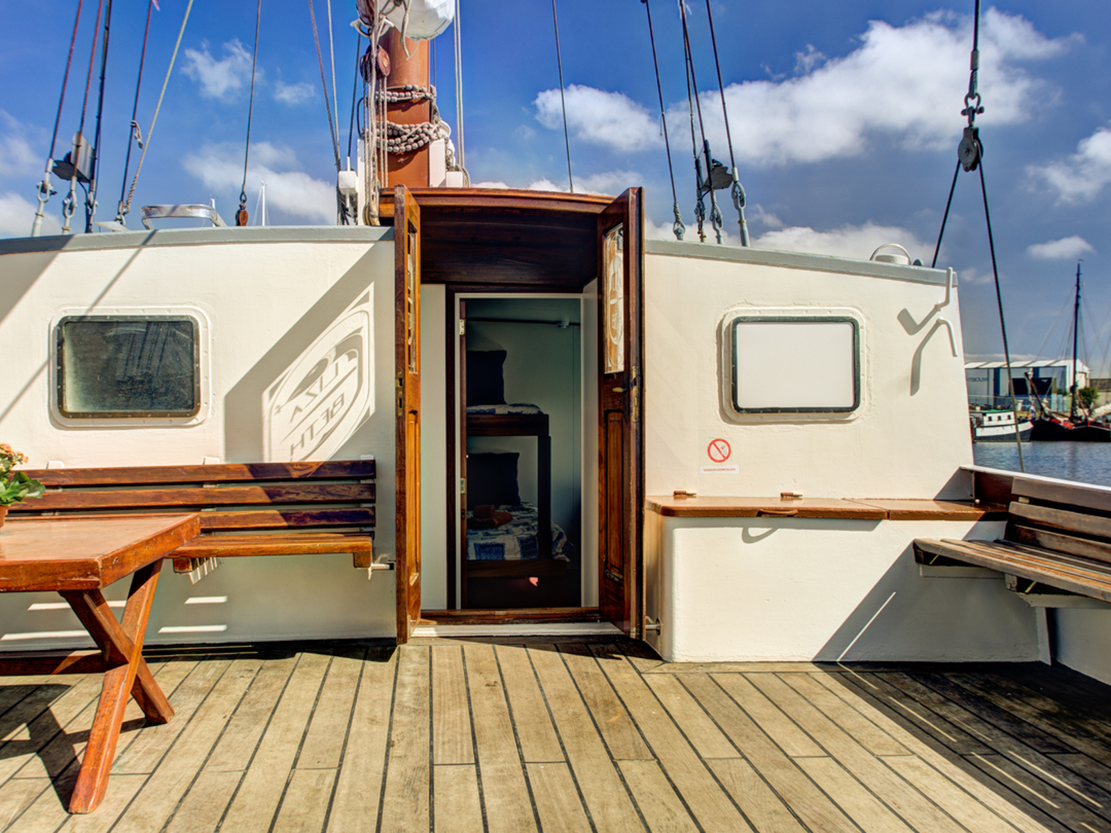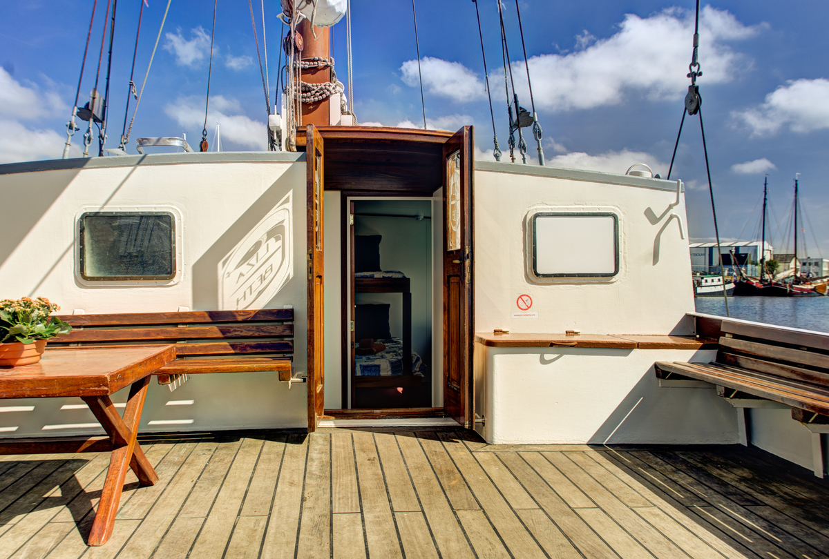 When you cast off the ropes on board the Elizabeth, the adventure starts immediately. Together the sails are hoisted and skipper Alwin ensures that the right course is set. Even guests without sailing experience become true sailors in no time. Nobody will be bored on board, because if the sales are set, everyone can enjoy view or get a drink at the bar. When guests don’t have time to actively help sail the ship, the sails can also be operated electrically.