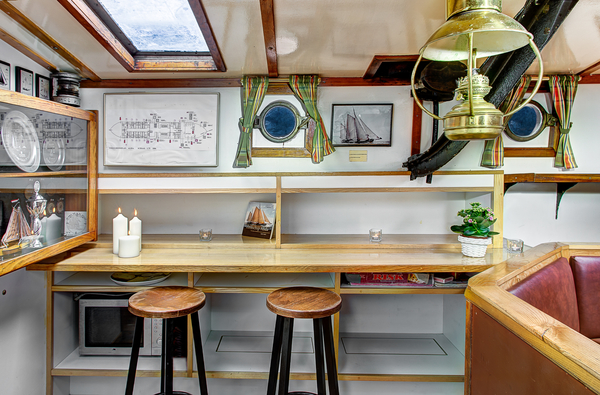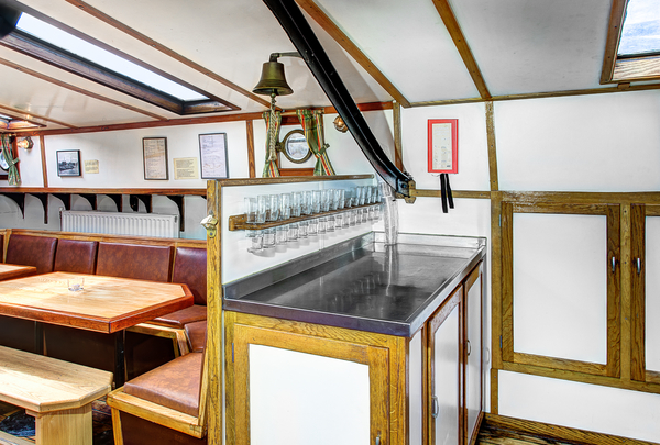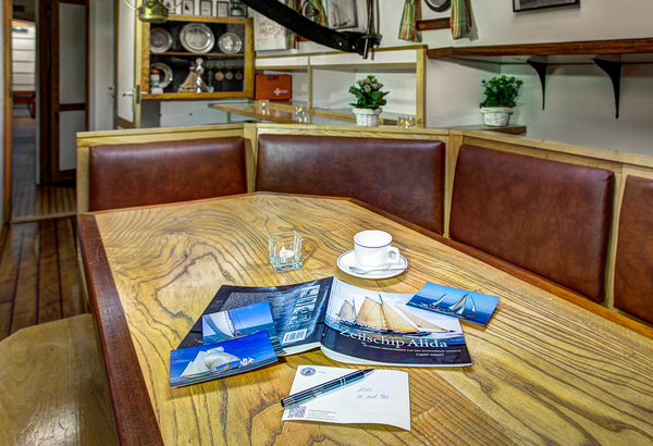 Benedendeks is de lichte salon geschikt voor jong en oud. Het monumentale karakter en de sfeer van weleer zijn bewaard gebleven door het eikenhouten interieur en door de zichtbaarheid van de spanten en de gebinten. Aan de vier tafels met rondom banken geniet u van een hapje en drankje. De grote dekluiken zorgen voor voldoende frisse lucht en licht in de salon. Sterke verhalen worden verteld aan de bar naar de prijzenkast. Hierin bevinden zich de vele prijzen, schalen en bokalen die de Alida gewonnen heeft tijdens verschillende zeilwedstrijden, zoals de Pieperrace, de Brandarisrace, de Beurtveer, de Waddenrace en de Slag in de Rondte.