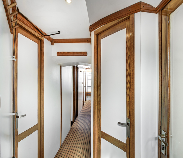 De Alida heeft haar traditionele karakter bewaard. Het lage dek heeft nog steeds houten dekluiken. Dit biedt genoeg zitmogelijkheden zodat u aan dek kunt luieren en kunt genieten van de zon, de wind en het water.