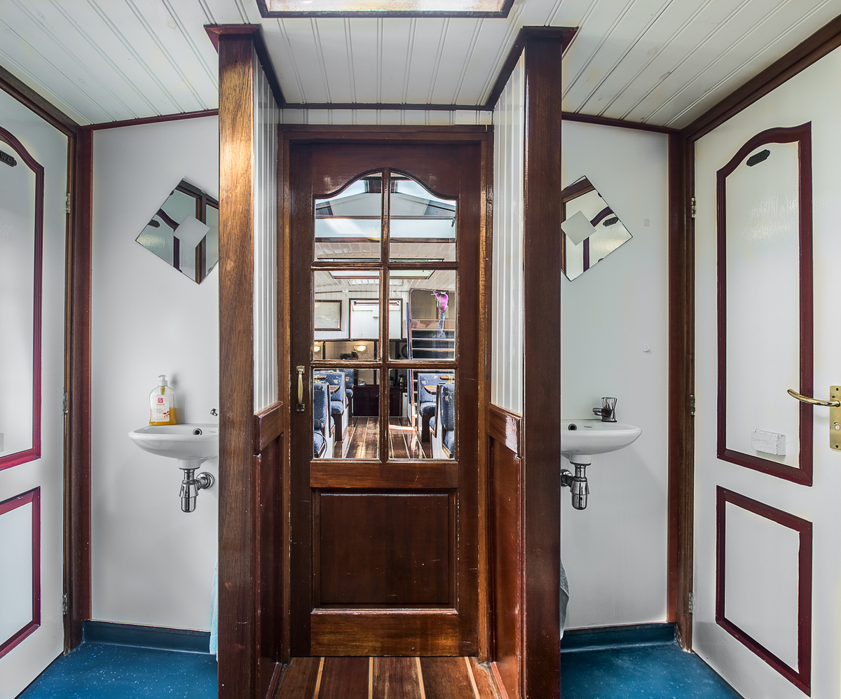 De salon beschikt over vijf tafels met banken. Hier is voldoende plaats voor 28 personen om te ontspannen en lekker te tafelen. Het hoge plafond, de ramen en grote dekluiken geven een ruimtelijk gevoel.