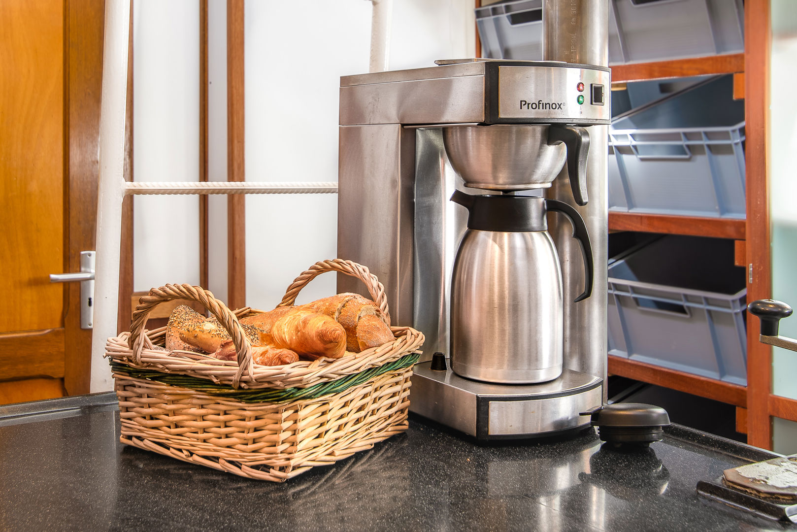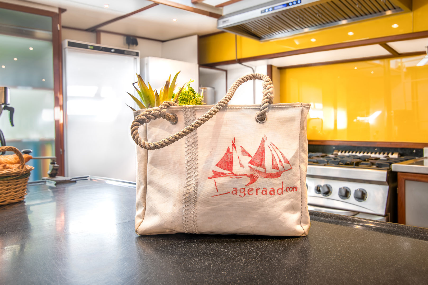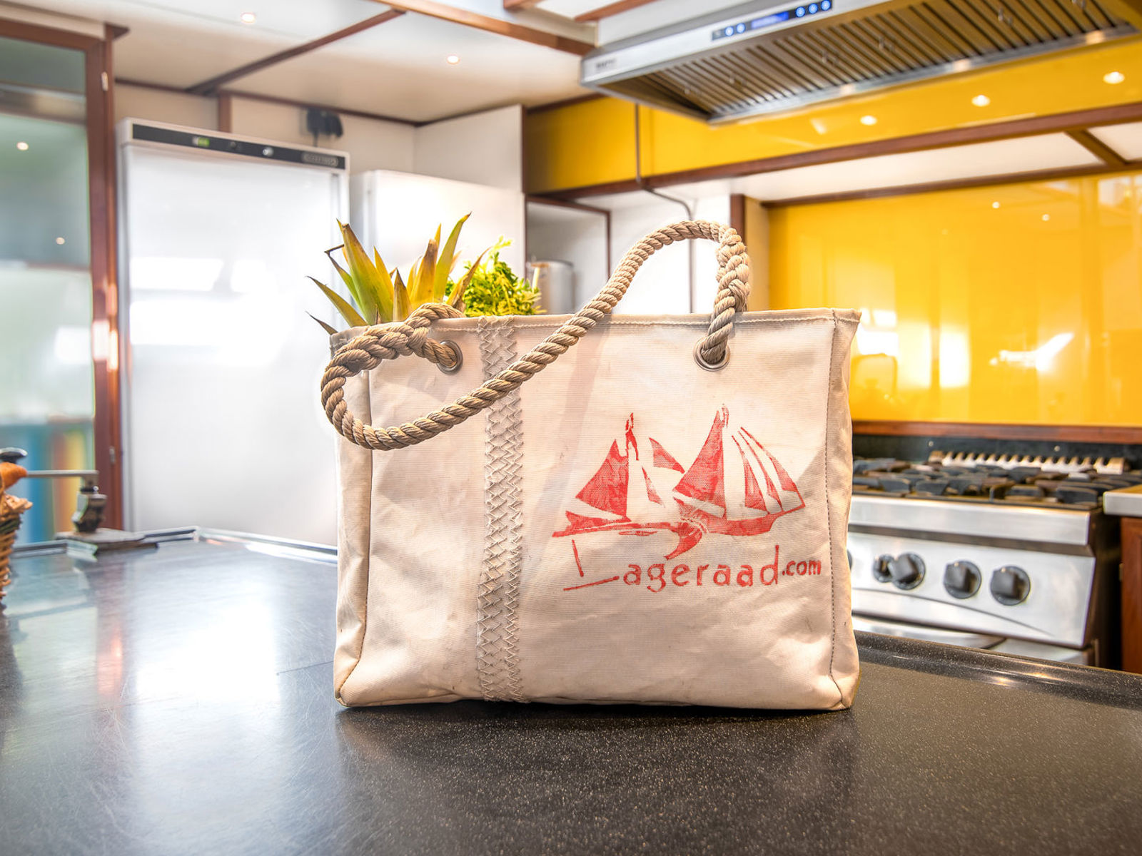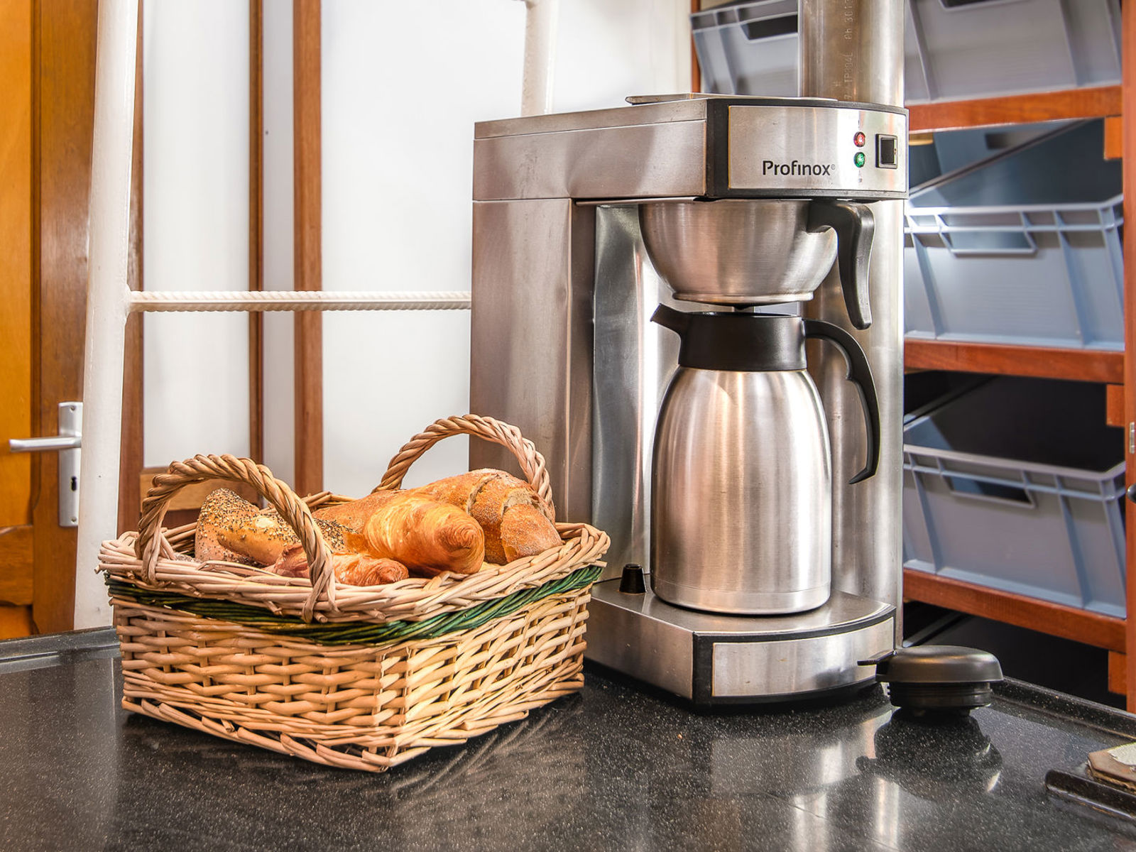 De grote kombuis (scheepskeuken) bevindt zich achter de salon. Hier heeft u alle ruimte de maaltijden voor uw groep te bereiden. De kombuis voorzien van alle gemakken, zoals een groot horeca-gasfornuis met oven, een grote koelkast, een vriezer en een vaatwasmachine.