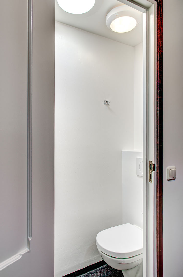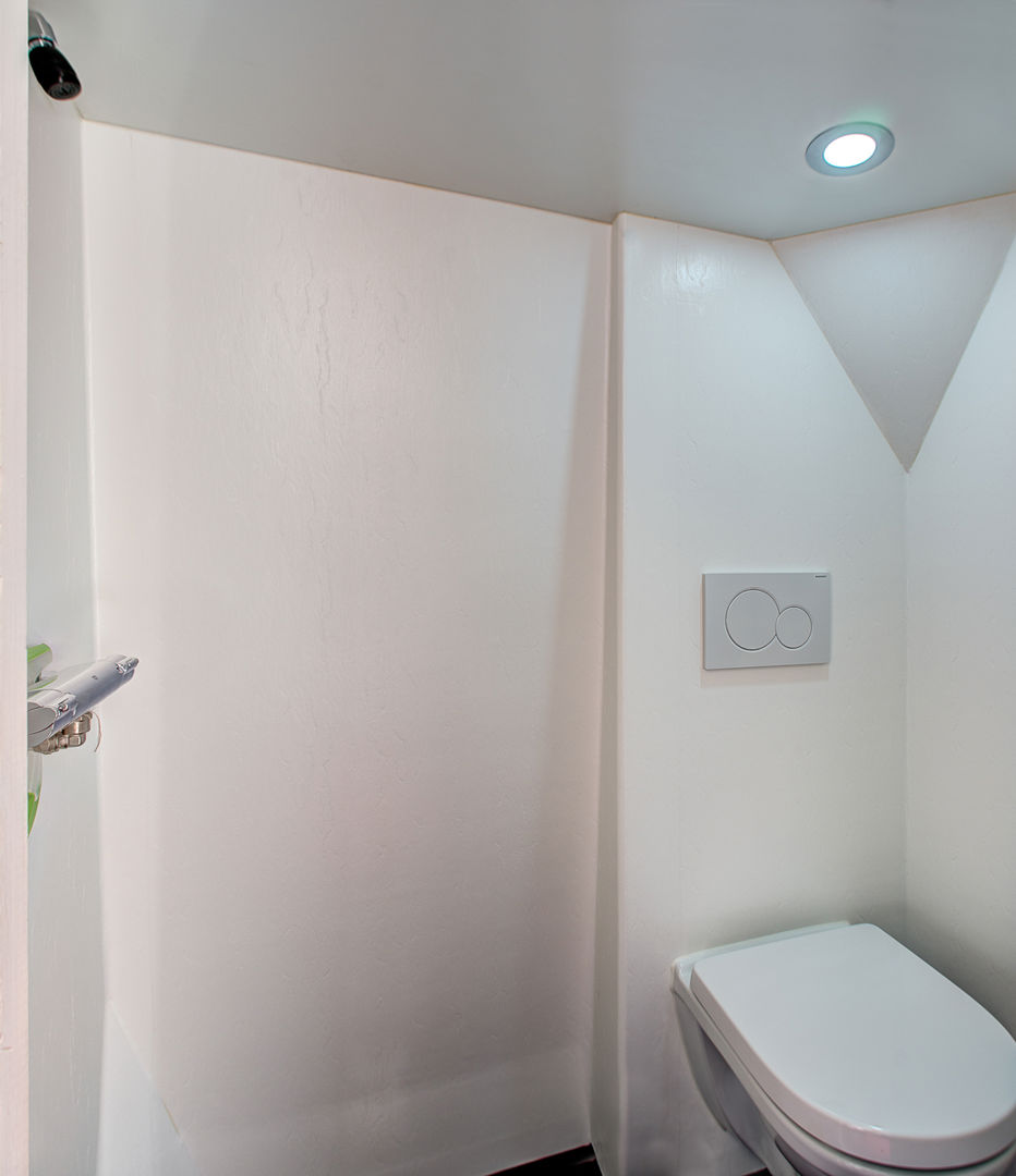 De 10 tweepersoons hutten beschikken alle over een eigen douche en toilet. De bedden bevinden zich naast elkaar met daartussen een kastje, zodat er ook genoeg opbergruimte in de hut aanwezig is. In 6 van de hutten kan een derde bed boven één van de bedden geplaatst worden. In vier hutten kan nog een derde en vierde bed boven de twee onderste bedden geplaatst worden.