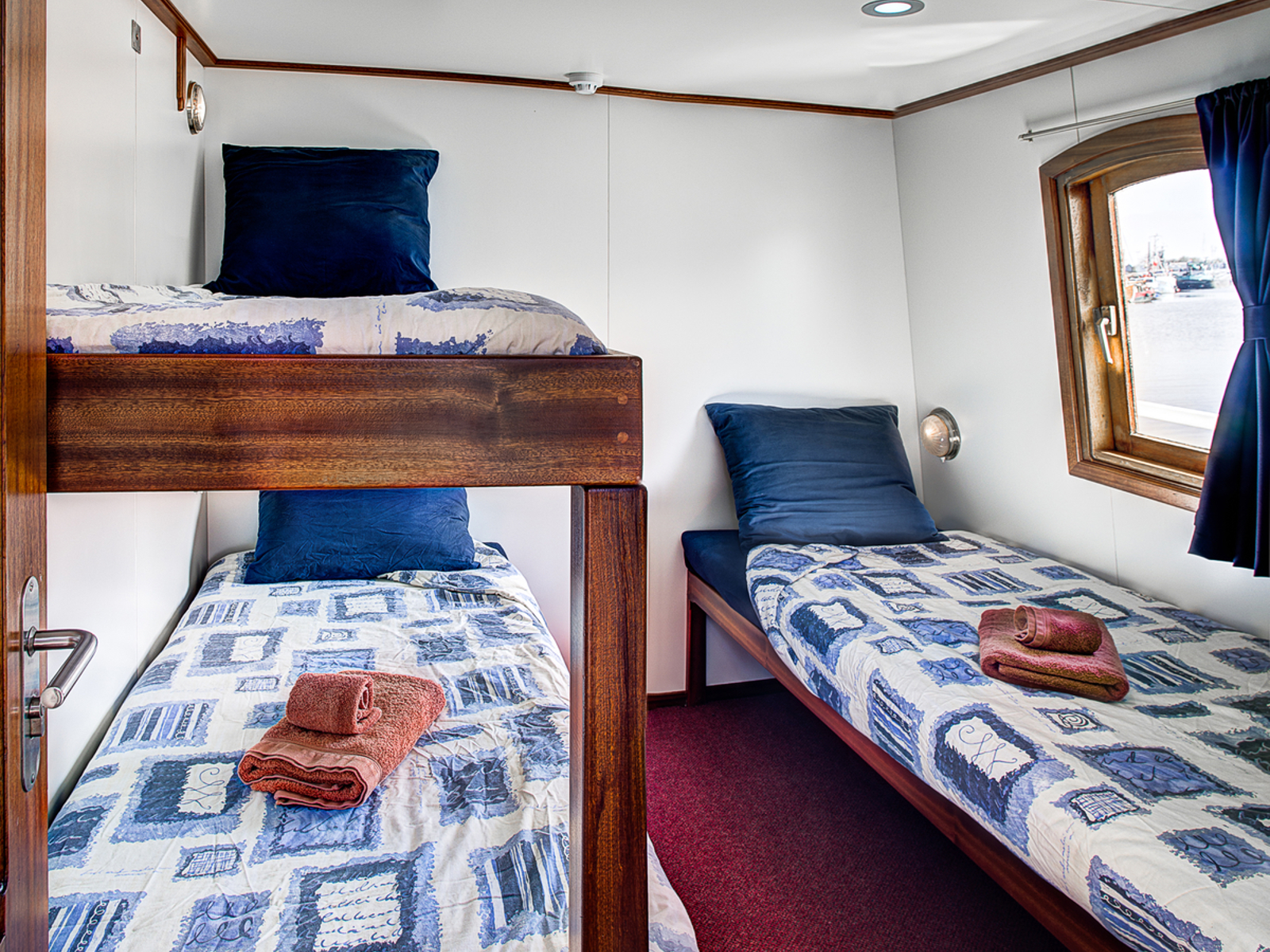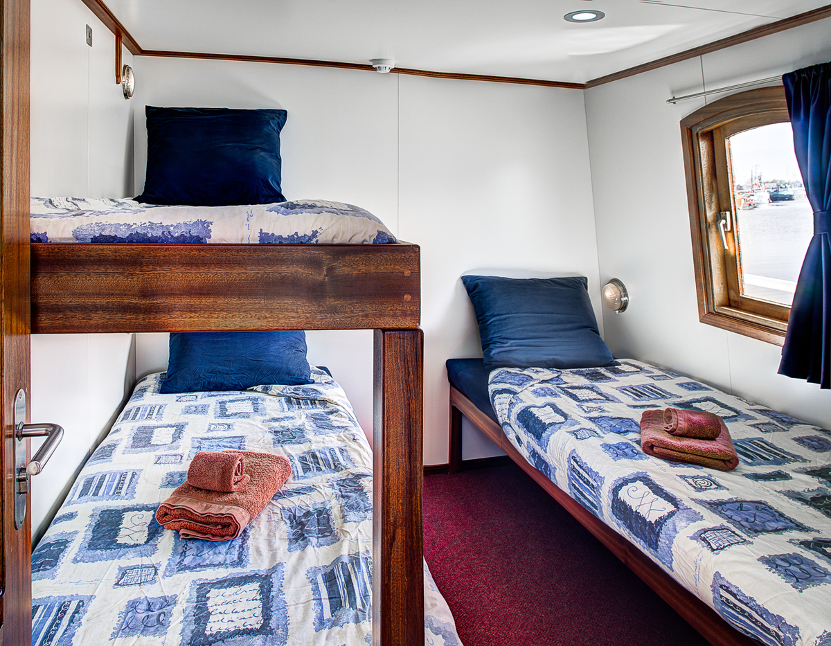De Elizabeth is een luxe klipper met maar liefst 3 masten. Er zijn 34 slaapplaatsen aan boord en benedendeks is er een ruime salon met een gezellige bar, vier grote tafels en een comfortabele zithoek. Alle meubels staan los, de indeling is dus flexibel. Door de grote ramen valt veel licht naar binnen en heeft u altijd zicht op de omgeving.