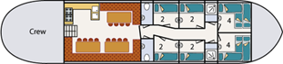 Een goed verzorgde tjalk, dat kenmerkt het zeilschip Middelsee. Met op het middendek een veilige kuip is het bij elk weer goed vertoeven op dit platbodemschip. Vanuit de kuip komt u direct in het gezellige dagverblijf met een open keuken, de koperen lampen geven een warme en nautische sfeer. De hutten zijn ruim en bieden veel bergruimte. In het hele zeilschip is royale stahoogte en veel daglicht.