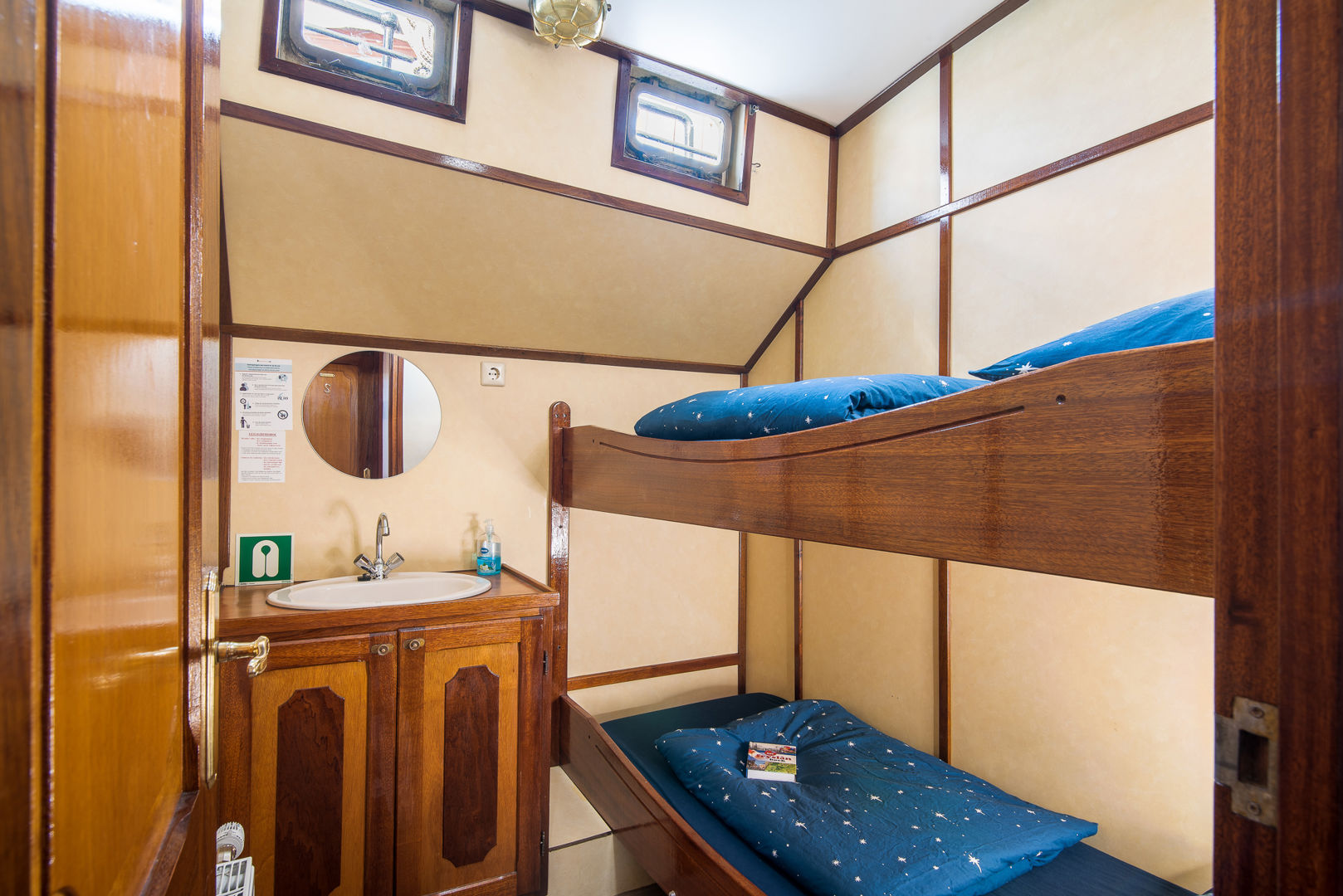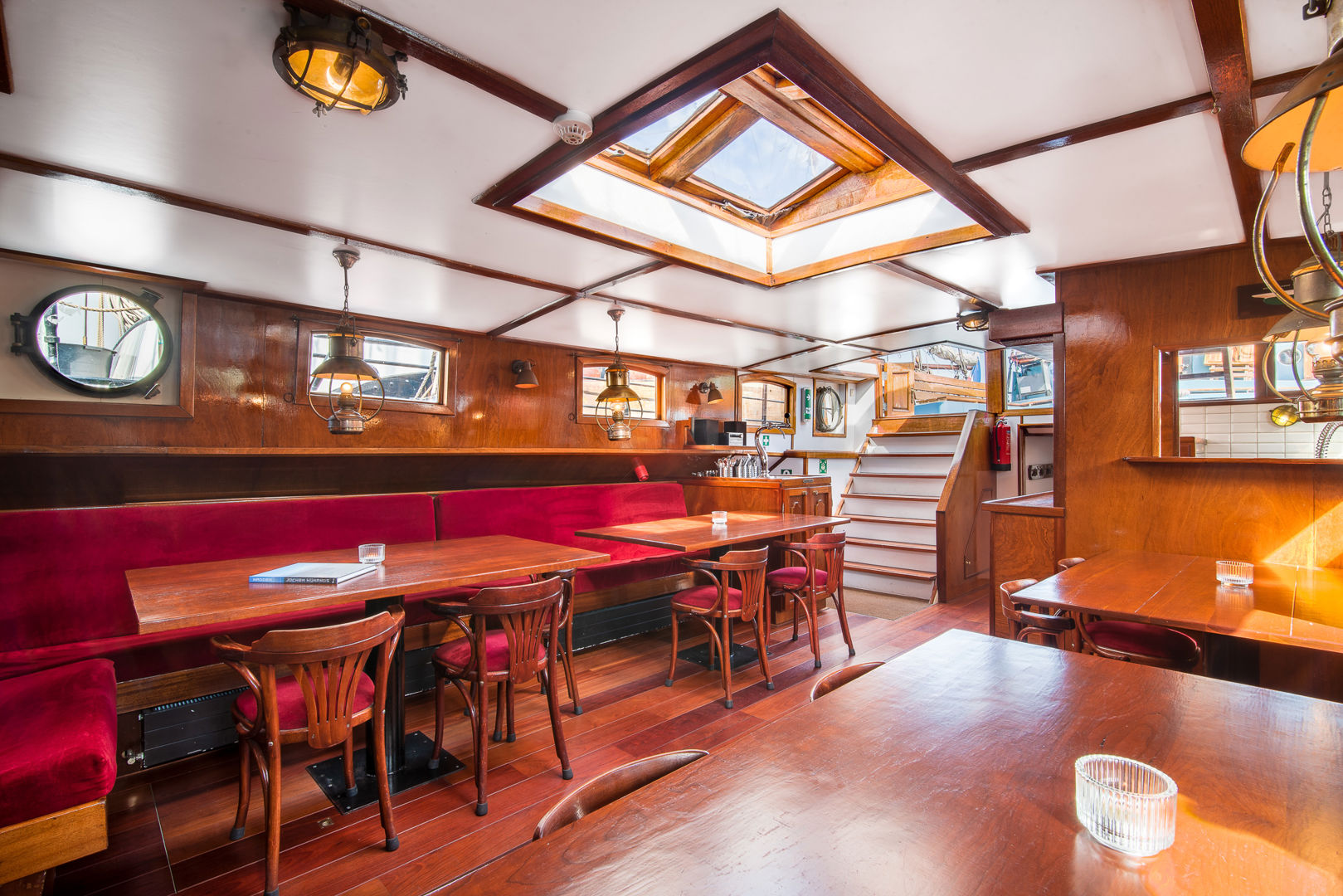 Uw verblijf aan boord van de Sterrenwind staat in het teken van actie en ontspanning. Actie aan dek om gezamenlijk het schip naar de volgende haven toe te zeilen. En na een dag met de frisse wind om uw hoofd vindt u ontspanning aan dek of onder dek in de lichte, ruime salon.
