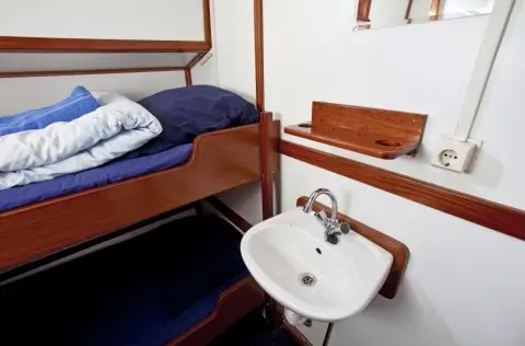 Het schip heeft een overnachtingscapaciteit van 34 gasten, verdeeld over 13 hutten. Alle hutten zijn uiteraard voorzien van centrale verwarming, zodat u ook in het voor- en najaar aangenaam aan boord kunt verblijven. Daarnaast beschikken de hutten over een wastafel met koud en warm water en heeft ieder bed een bedleeslampje.